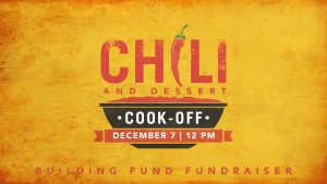 Bring your best recipes and your appetite to our Chili & Dessert Cookoff Fundraiser! Compete for bragging rights by entering your favorite chili or Christmas-themed dessert for just $10 per entry, with three judges for each category. Join us for a delicious lunch, friendly competition, and great fellowship, all while supporting our church building fund. Donations will be accepted at the door.