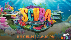 Join us from 6-8:30 each evening for Scuba: Vacation Bible School. Kids from Pre-school through the 5th grade will experience Bible stories, music, skits, crafts, and more!