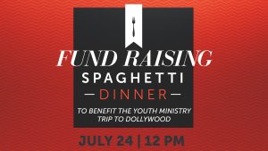 Join us immediately following our Sunday morning services as our youth group hosts a spaghetti dinner. This dinner will be to raise money for their trip to Dollywood.
