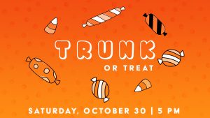 Join us for Trunk or Treat as we line the parking lot with cars that are decorated to the max where you can stop by to fill up your bag or bucket with candy! Join us for the candy, costumes and fun!